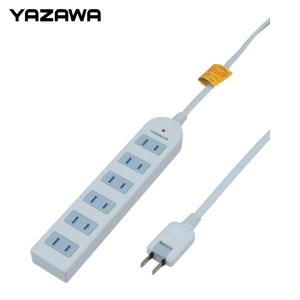 - ヤザワコーポレーション 雷サージ付延長コード・タップ6個口2m白 (1個) 品番:Y02KS602WH