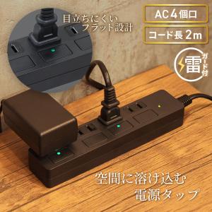 - 電源タップ コンセント4口 電源コード2m 18ヵ月保証 雷ガード 延長コード ダークブラウン STYLED PTP4DB-2