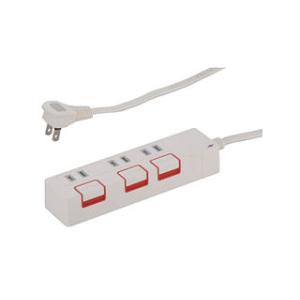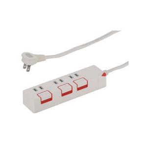 - OHM/オーム電機 押しボタンスイッチ付き雷ガード節電タップ 3個口 2.5m HSK-1186W