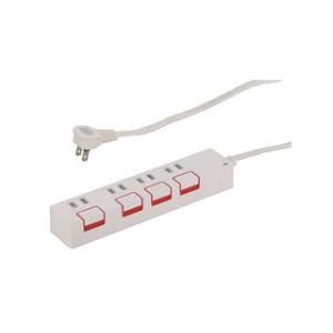 - OHM/オーム電機 押しボタンスイッチ付き節電タップ 4個口 2.5m HS-T1178W