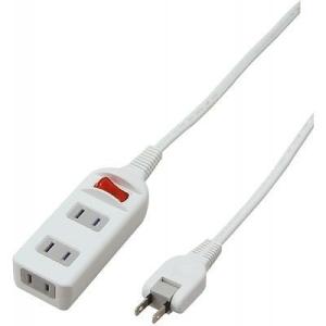 - 2口タップ雷LEDスイッチ 延長 分配 コード タップ コンセント 分岐 HS-TMK2B2-W オーム電機 (D)