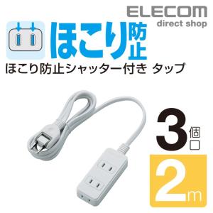 - エレコム シャッタータップ 3個口 2m ほこり防止 電源タップ 延長コード OAタップ オフィス 延長ケーブル コード ホワイト 2.0m┃T-ST02N-2320WH
