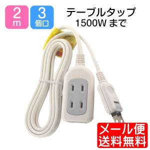 - 延長コード 2m 3個口 テーブルタップ 1500W 部屋 コンセント SK-3T02W ゆうパケット発送