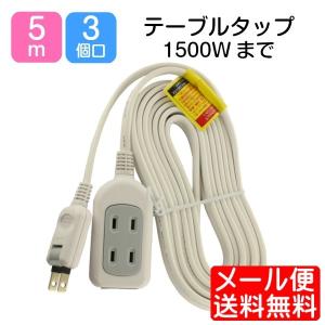 - 延長コード 5m 3個口 テーブルタップ 1500W 部屋 コンセント SK-3T05W ゆうパケット発送