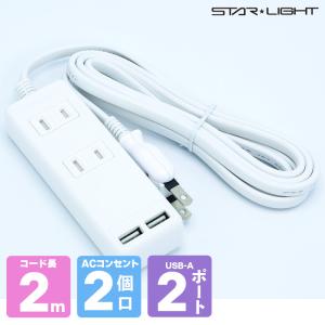 - 【2個口 + 2USB】延長コード USB付 2m Type-A 【2m】