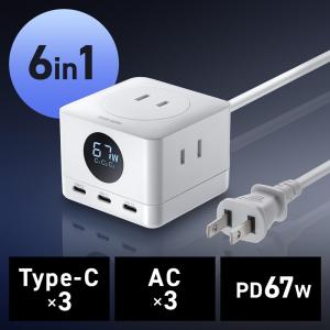 - 電源タップ USB Type-C PD 65W GaN コンセント3口 電力表示対応 ケーブル長2m EZ7-TAP080