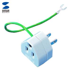- サンワサプライ コンセント 3P→2P変換アダプタ アースコード付き グレー TAP-AD1GYN