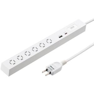 - サンワサプライ スリムタップ 3m・ホワイト TAP-SLIM6UC-3W