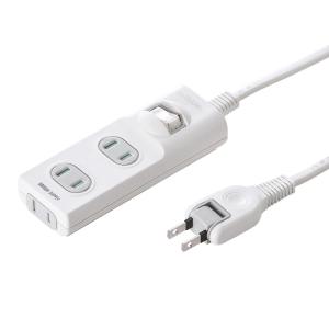 - 延長コード 中間スイッチ付 2Pプラグ 1個口 1m 絶縁キャップ付きスイングプラグ ホワイト TAP-B7-1N サンワサプライ