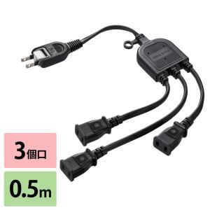 - 電源タップ 3個口 3分配 延長コンセント 延長コード コンセント ACアダプタ OAタップ コンセントタップ ブラック TAP-EX3BKN