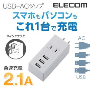 - エレコム 電源タップ 延長コード コンセント タップ モバイルタップ AC充電器一体型 縦向きタイプ 1個口 USB 3ポート 2.1A出力 ホワイト┃MOT-U05-2132WH