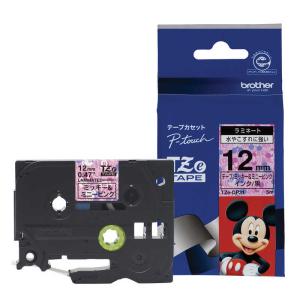 - ブラザー brother 「純正】ピータッチ ラミネートテープ 幅12mm (黒文字/ミッキー&ミニーピンク) TZe-DP31
