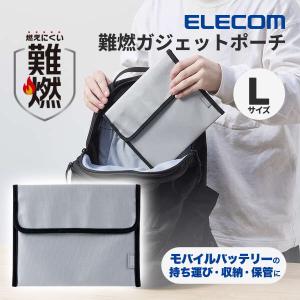 - エレコム 難燃ガジェットポーチ モバイルバッテリー 収納 Lサイズ 折り込みタイプ ポケット付属 保管 グレー ELECOM