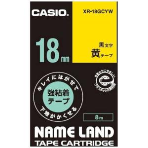 - カシオ CASIO ネームランドテープ キレイにはがせて下地がかくせる強粘着テープ (黄/黒文字/18mm幅) XR-18GCYW