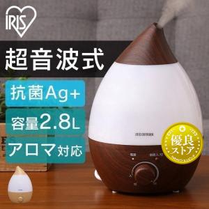 - アイリスオーヤマ 加湿器 大容量 超音波式 加湿量 280ml タンク容量 2.8L 8畳 10時間連続加湿 アロマ対応 しずく型 卓上 デスク