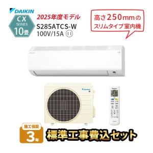 - エアコン 10畳 工事費込 冷暖房 ダイキン コンパクト 単相100V 内部クリーン お掃除機能付き 空気清浄 CXシリーズ S285ATCS-W 2025年度モデル