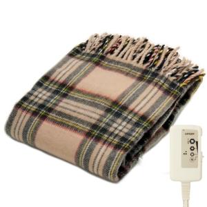 - ライフジョイ 電気ひざ掛け 日本製 ベージュ チェック柄 160cm×82cm 電気毛布 洗える ブランケット 大判 ふわふわ あったか JPN