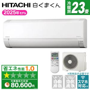 - 日立 HITACHI ステンレス・クリーン 白くまくん 【GBFT Online限定 標準工事費込み】 エアコン スターホワイト RAS-VJ2525S-W 8畳 100V