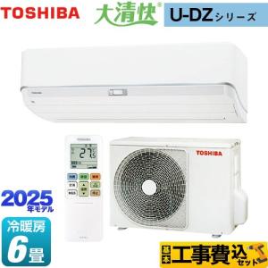 - 工事費込みセット 大清快 U-DZシリーズ ルームエアコン 冷房/暖房:6畳程度 東芝 RAS-U221DZ-W 室内機:高さ250mmコンパクトタイプ ホワイト