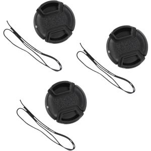 - レンズキャップ 3個セット インナー式 ワンタッチ着脱 中央つまみ 紛失防止ストラップ付き レンズ保護用 (49mm)