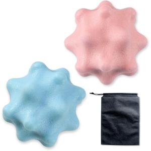 - マッサージボール ピラティス リラックス ツボ押し 健康グッズ 手 足の裏 袋付 (ブルー・ピンク 2個セット)