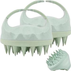 - 頭皮マッサージブラシ 2個セット 泡立ち特大ハンドル 柔らか歯(グリーン)
