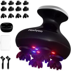 - ヘッドスパ 電動頭皮ブラシ クリスマス赤青W光搭載 3D振動 頭皮洗浄 頭皮エステ スカルプケア 顔 全身適用 (ラメ入りブラック)