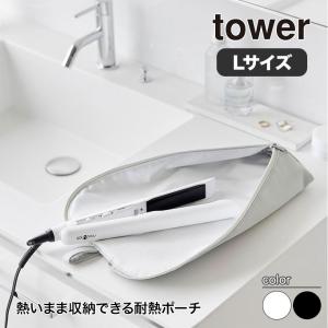- 山崎実業 耐熱ヘアーアイロンポーチ タワーL tower ライトグレー ブラック 1383 1384 ヘアアイロン ケース 熱いまま