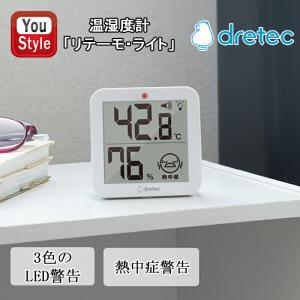 - ドリテック DRETEC デジタル温湿度計「リテーモ・ライト」ホワイト/451WT 壁掛け 卓上 小さい サイズ 温度 湿度 熱中症 夏 猛暑 警告
