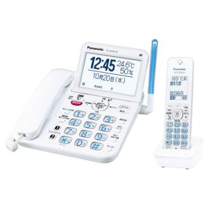 - 【即納】電話機 パナソニック 子機2台付き 温度・湿度センサー搭載 迷惑電話防止機能 大画面液晶 W ホワイト コードレス電話機 VE-GD69DW