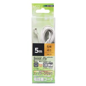 - 〔5個セット〕 MCO 電話機コード 6極4芯 5m 白 フラット DC-F405/WHX5
