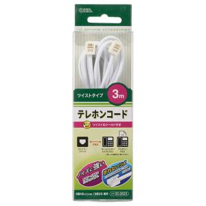 - オーム電機 テレホンコード ツイストタイプ 3m TEL-C2623T【品番:05-2623】