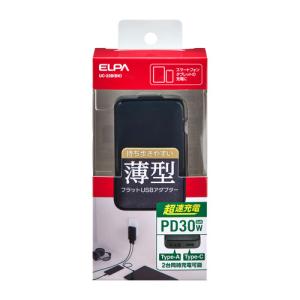 - エルパ(ELPA) USB充電器 PD 30W 薄型ACアダプター UC−23(BK) ブラック ハンズ
