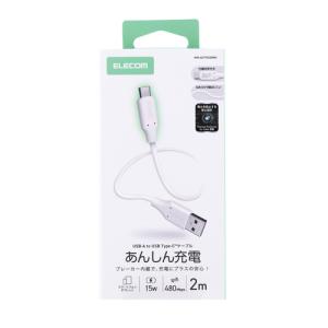- エレコム MPA-ACTPSS20WH USB-A to USB-C ケーブル ブレーカー搭載 2m やわらかシリコン ホワイト