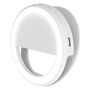 - ELECOM エレコム DE-L04WH LEDリングライト 直径9cm クリップ式 3段階調光 USB充電式 自撮り ホワイト DEL04WH