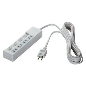 - 2ピン式電源タップ個別スイッチほこり防止シャッター付6個口3.0mWH 取り寄せ商品