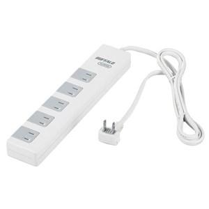 - バッファロー 2ピン式電源タップ 6個口タイプ 雷サージ防止/個別スイッチ付 1m ホワイト BSTAPSW2610WH