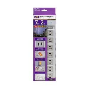 - 【送料無料】ELPA 電源タップ 耐雷サージ スリム回転タップ 7個口2m ホワイト WBS-SL702SB W