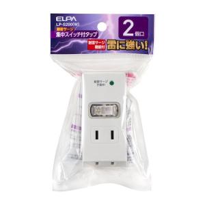 - 朝日電器 ELPA LP-S200(W) 耐雷集中SW2個口タップ LPS200(W) 集中スイッチ付 耐雷サージ機能付