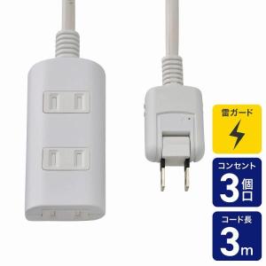 - 朝日電器(ELPA) 扉付タップラン 雷ガード 3個口 3m ホワイト 【品番:WBT-N3030SB(W)】