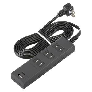 - オーム電機 節電タップ光る押しボタンスイッチ雷ガード4個口 USBポート付き 2m ブラック HS-TPKU42K-22
