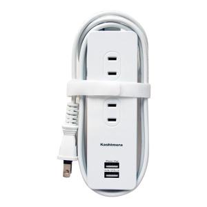 - カシムラ USB付電源タップ 2口ACコンセント USB-A 2ポート搭載 AC-031(WH)