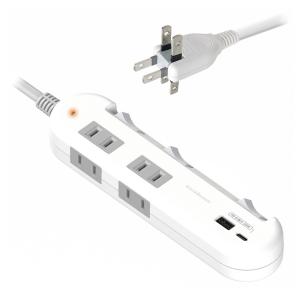 - 電源タップ AC充電器 3口 Type-C 2ポート 45W PD高速充電/リバーシブルUSB-A 1ポート/3コンセント