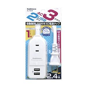 - カシムラ AC充電器タップ 2.4A IC(3個口+USB2ポート・1m) AJ588 ホワイト
