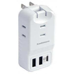 - Kashimura カシムラ 電源タップAC2-C+A-PD20W 収納プラグ リバーシブル 自動識別 AC-055