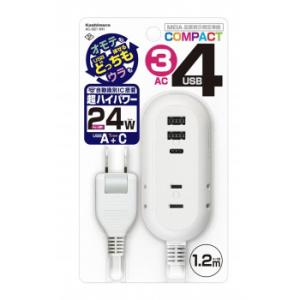 - カシムラ 電源タップ 延長コード 4AC4USB 3A+1C 24W 1.2m リバーシブル SW 自動識別 WH AC-022