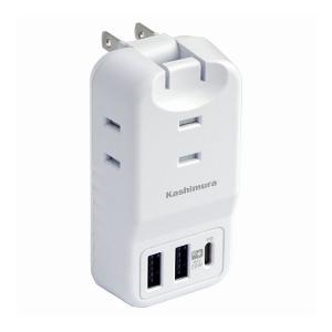 - カシムラ 電源タップ 3AC3USB 2A+C PD20W リバーシブル 自動識別 WH AC-035