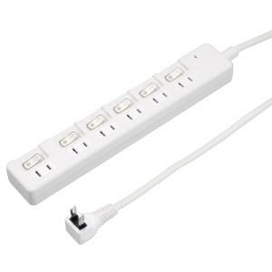 - ヤザワ 横差し個別スイッチ付節電タップ 6個口 2m ホワイト Y02YBKS662WH