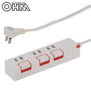 - OHM 押しボタンスイッチ付き 節電タップ 3個口 2.5m HS-T1176W
