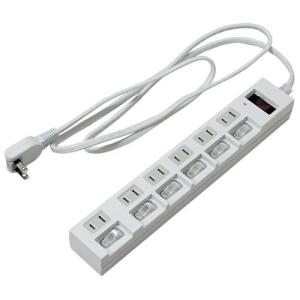 - ヤザワ Y02BKS672WH ホワイト 個別集中スイッチ付節電タップ6個口 2m